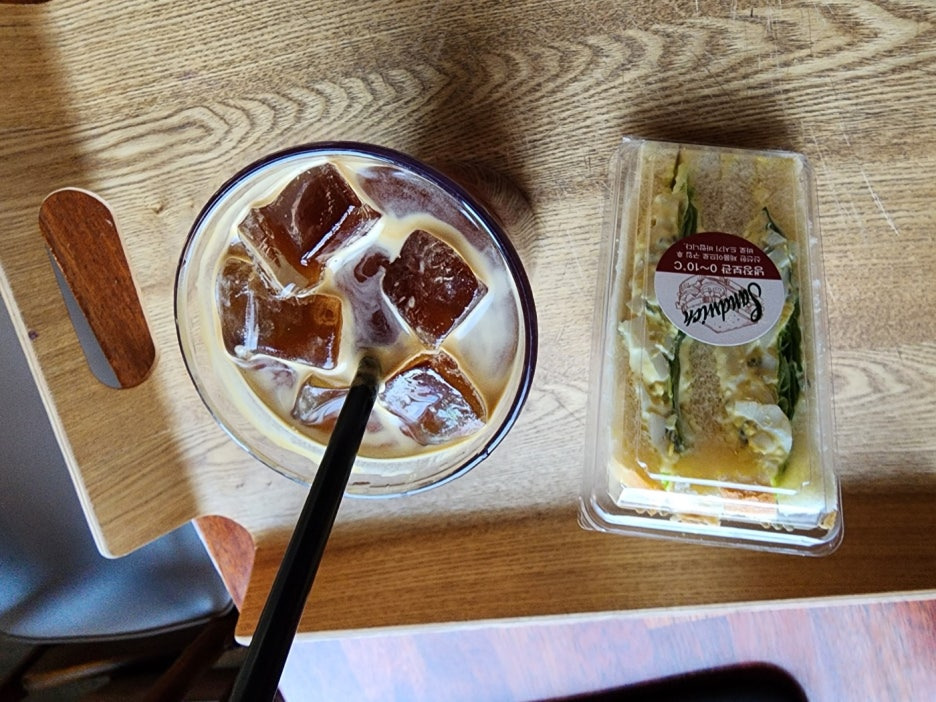 그리고 나온 아이스 아메리카노와 에그 샌드위치