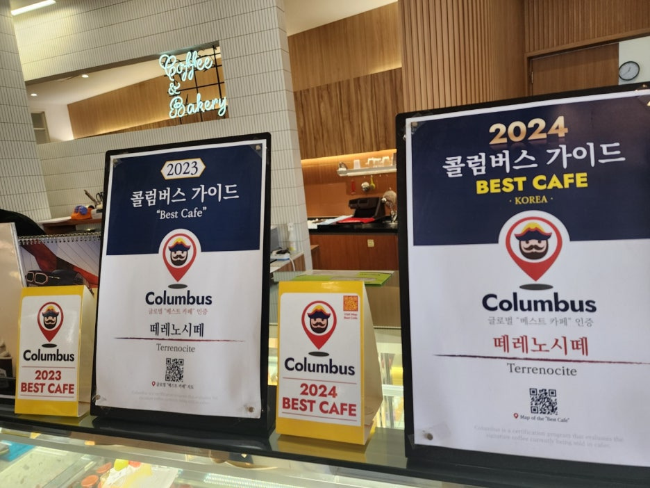 참고로 콜럼버스 가이드는 세계적으로 인정받는 커피맛집 인증 표시제로
